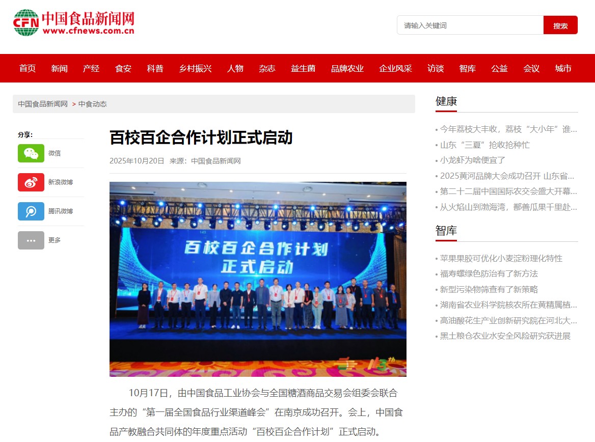 10月17日,由中國食品工業(yè)協(xié)會與全國糖酒商品交易會組委會聯(lián)合主辦的“第一屆全國食品行業(yè)渠道峰會”在南京成功召開。會上,中國食品產(chǎn)教融合共同體的年度重點活動“百校百企合作計劃”正式啟動。