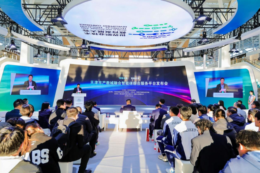 2024年11月21日,2024年世界職業技術教育發展大會期間,天津市產教城融合智能體綜合服務平臺發布會在國家會展中心舉行。(主辦方供圖)